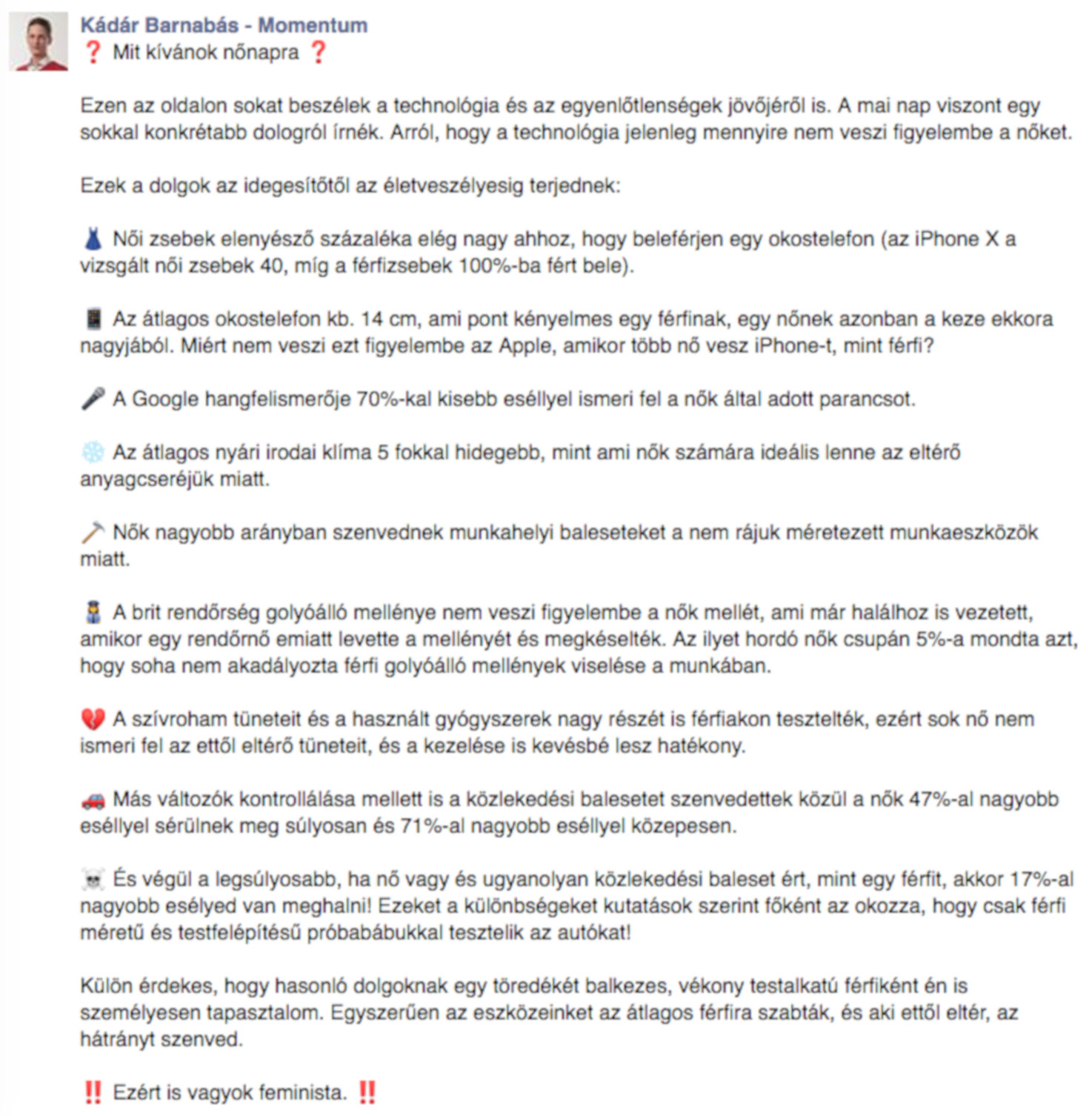 Lássuk a bejegyzést, amit a Momentumos Kádár Barnabás vetett digitális papírra: