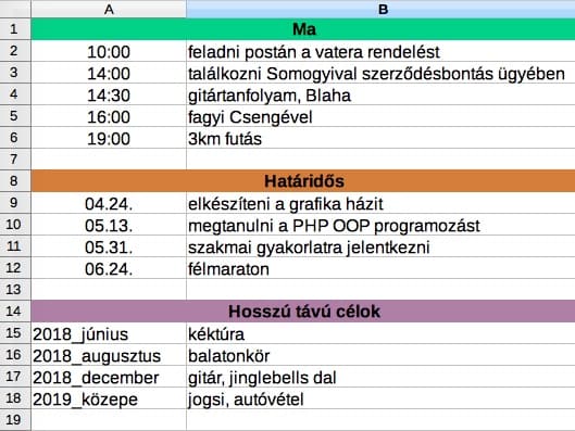 Nem elég leírni és határidőt kitűzni a célokhoz, azokat kategorizálni is kell. Készíts 3 kategóriát és pakold tele teendőkkel őket!